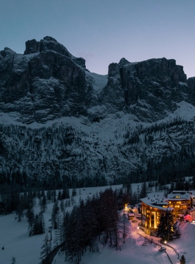 SPA Hotel mit Dolomiten Panorama: Wir befinden uns in Kolfuschg, in Alta Badia. Hier, vor der bezaubernden Kulisse der Sellagruppe, herrschen rund um die Uhr - ob tagsüber oder nachts, im Winter oder im Sommer - Lebensfreude, Heiterkeit und Lebenslust.