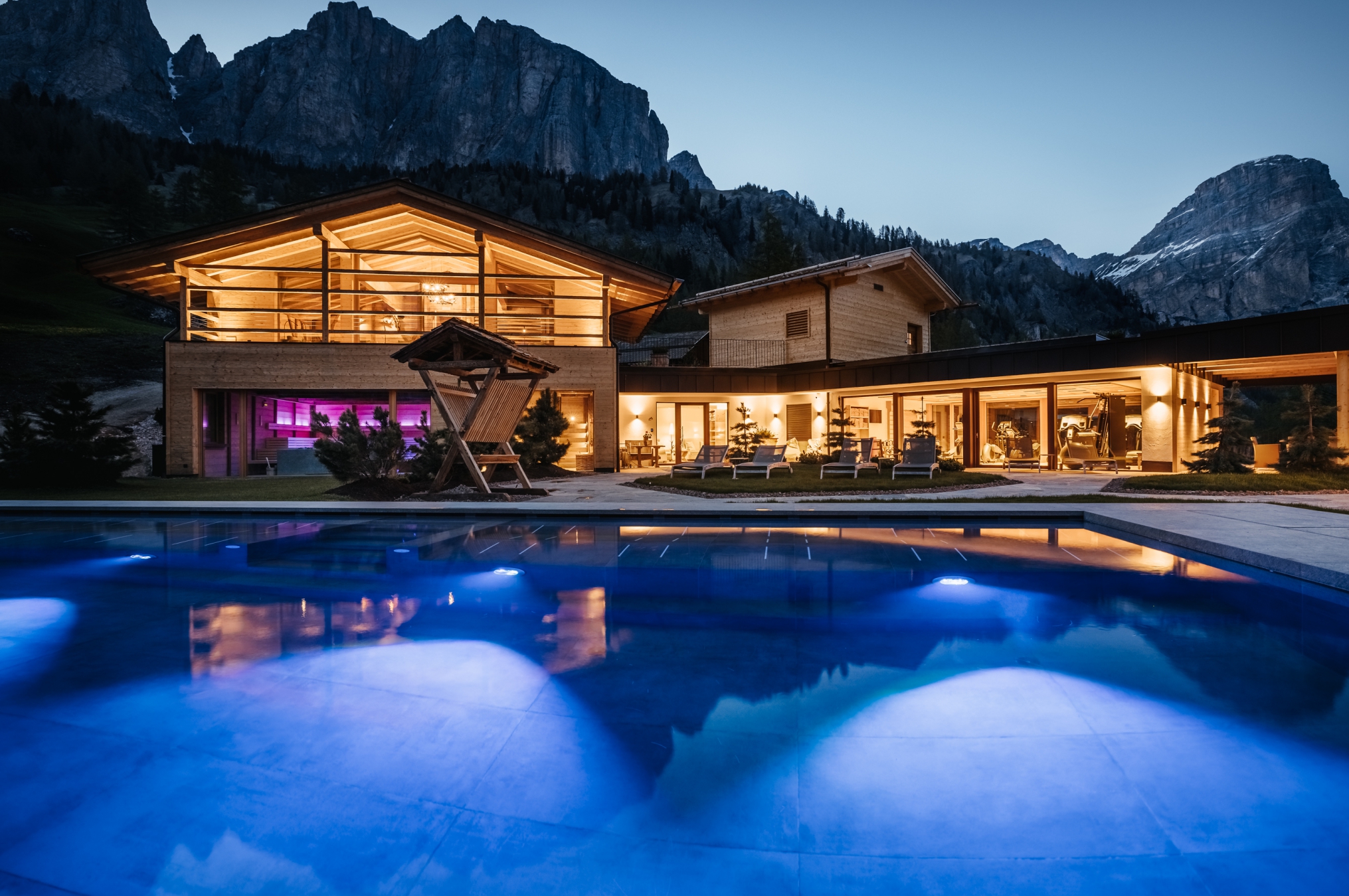 Colfosco, Alta Badia: un'oasi panoramica in cui la spa diventa paesaggio, la sauna un respiro di legno e la piscina infinity un orizzonte di benessere.